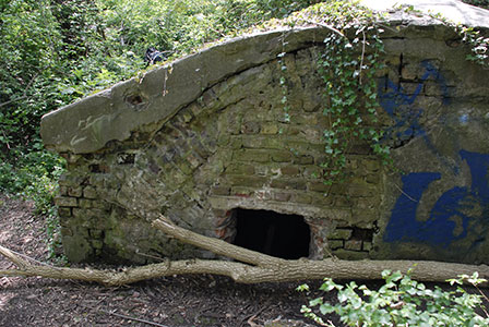Zwischenwerk IXb im Gremberger Wäldchen. In die erhaltene Kehlkaserne kann man mit etwas
